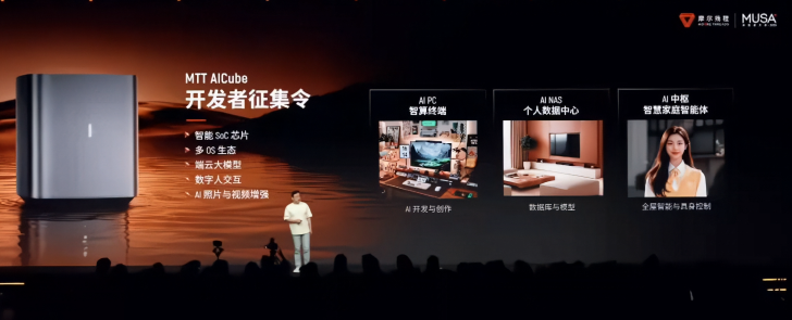 Όσον αφορά τις πλατφόρμες, η Moore Threads αποκάλυψε δύο σχέδια, έναν φορητό υπολογιστή που ονομάζει MTT AIBook και έναν Mini PC που ονομάζεται MTT AICube. Αυτά τα συστήματα υποστηρίζουν μνήμη LPDDR5X 32 και 64 GB με εύρος ζώνης άνω των 100 GB/s. Το ίδιο το τσιπ υποστηρίζει υπολογιστικές μορφές FP16, FP32 και FP64.