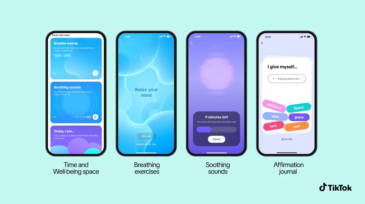 Η εταιρεία αναδιαμορφώνει πλήρως τη σελίδα διαχείρισης χρόνου οθόνης, μετατρέποντάς την από μια απλή ρύθμιση σε ένα κέντρο «ψηφιακής φροντίδας». Το νέο σύστημα διαθέτει περισσότερες από 120 προτροπές που ενθαρρύνουν τους χρήστες να θέτουν θετικές προθέσεις για την ημέρα τους, λειτουργώντας σχεδόν σαν μίνι συνεδρίες αυτοβοήθειας. Επιπλέον, προστίθεται ένας γεννήτορας χαλαρωτικών ήχων, όπως βροχή ή κύματα, καθώς και ασκήσεις αναπνοής – ένα μοντέλο που θυμίζει ευρωπαϊκές εφαρμογές ευεξίας, αλλά ενσωματώνεται σε μία από τις πιο εθιστικές εφαρμογές παγκοσμίως.