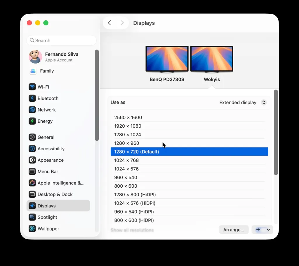 Το πρώτο πράγμα που δοκίμασα ήταν να το χρησιμοποιήσω ως αυτόνομη οθόνη. Ομολογώ ότι είναι μικροσκοπικό. Θα μπορούσατε τεχνικά να κάνετε ό,τι χρειάζεστε, ειδικά αν πάτε στην πλήρη ανάλυση 2560×1600, αλλά γίνεται μικροσκοπική! Θεωρητικά, αν ήταν η μόνη σου οθόνη και έπρεπε να κάνεις κάτι, θα έκανε τη δουλειά. Μπορείτε να δείτε παρακάτω όλες τις αναλύσεις που υποστηρίζει.