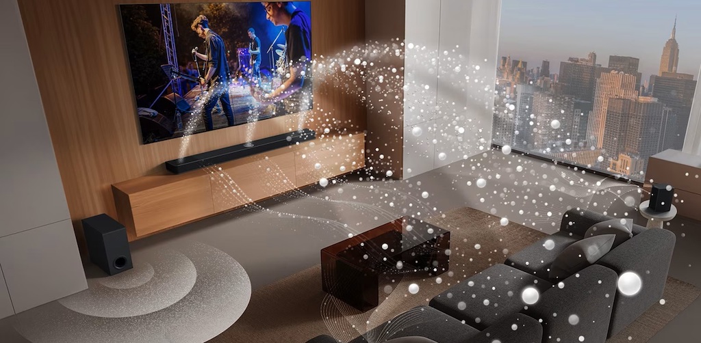 Η τεχνολογία AI Room Calibration Pro σαρώνει το χώρο και ρυθμίζει αυτόματα την ένταση για την τέλεια ακουστική εμπειρία, χωρίς παραμορφώσεις, ακόμα και από το πίσω μέρος του δωματίου. Το AI Sound Pro αναγνωρίζει τη φύση του ήχου — είτε πρόκειται για φωνές, μουσική ή εφέ — και προσαρμόζει τις ρυθμίσεις κατάλληλα, διασφαλίζοντας την καλύτερη ηχητική εμπειρία.
