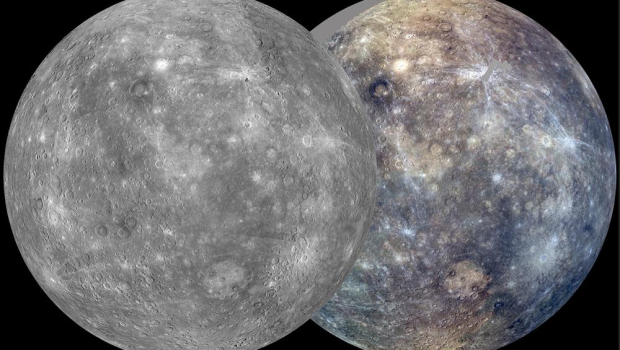 Κεντρική εικόνα (ο Ερμής): Από φωτογραφίες που ελήφθησαν από το διαστημόπλοιο Messenger στις 5 Οκτωβρίου 2011.