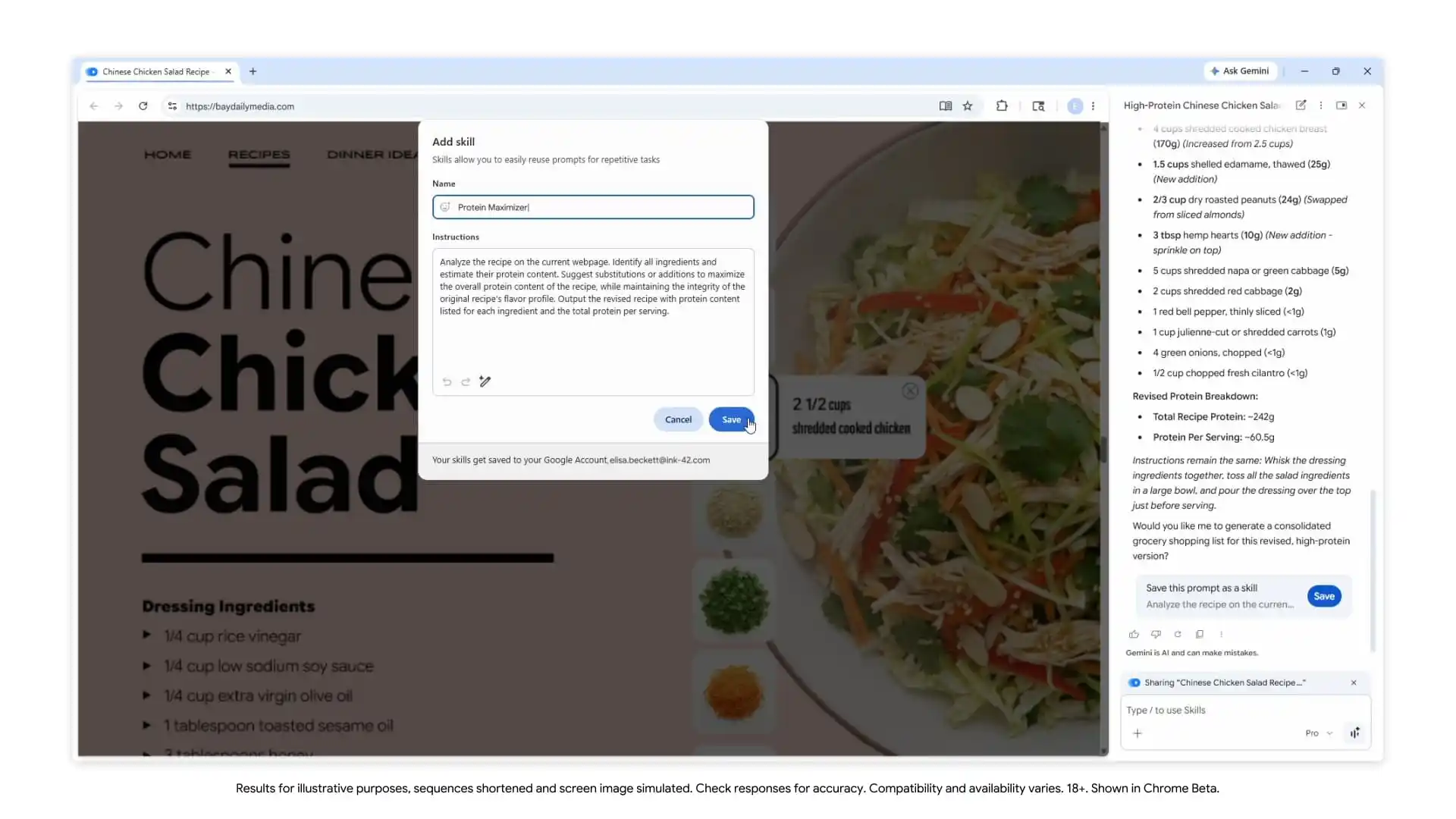 Κάθε Skill μπορεί να εκτελείται είτε στη σελίδα που βλέπει ο χρήστης είτε σε άλλες επιλεγμένες καρτέλες. Με τη λειτουργία προσθήκης, το Gemini μπορεί να συγκεντρώνει δεδομένα από πολλαπλές πηγές και να τα επεξεργάζεται ταυτόχρονα, βελτιώνοντας έτσι την αποτελεσματικότητα της εργασίας.