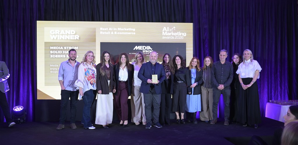 Τέσσερις σημαντικές διακρίσεις απέσπασε στις 23 Απριλίου η Media Strom στην πρώτη διοργάνωση των AI in Marketing Awards 2026, επιβεβαιώνοντας τον πρωτοποριακό της ρόλο στην αξιοποίηση της Τεχνητής Νοημοσύνης στον τομέα του σύγχρονου marketing.