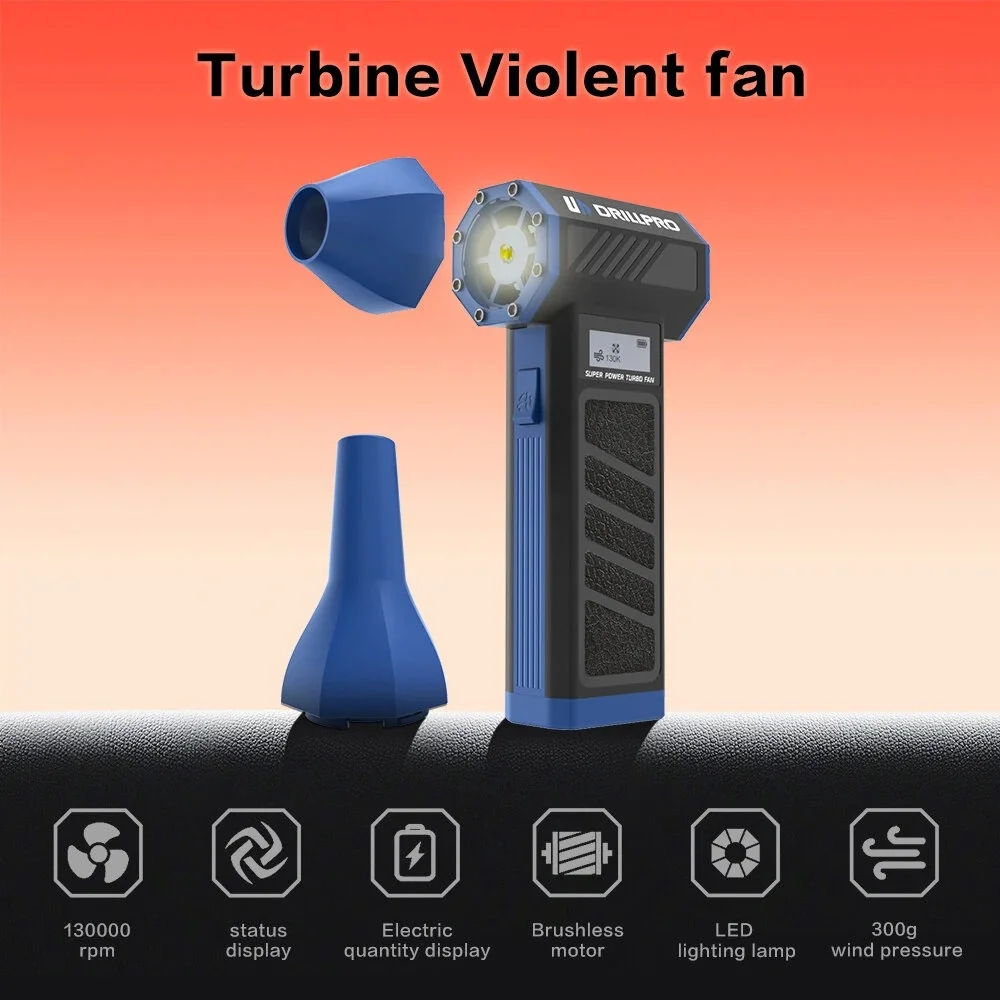 Το DRILLPRO P30 Turbo Fan δεν είναι απλά ένα φορητό blower. Σχεδιάστηκε αποκλειστικά για εργασίες καθαρισμού, παρέχοντας μια εξαιρετική λύση χωρίς λειτουργία αναρρόφησης. Είναι ιδανικό για να απομακρύνει σκόνη από πληκτρολόγια, γωνίες ή ακόμα και από το εσωτερικό του υπολογιστή σας, με μια εντυπωσιακή δύναμη προσφοράς που ξεπερνά τις προσδοκίες σας.