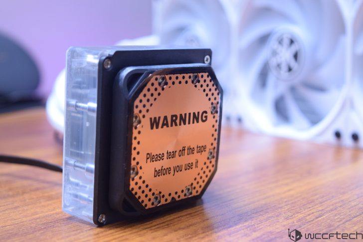 Προχωρώντας στο μπλοκ νερού της CPU, έχουμε μια χάλκινη βάση πλήρους πλάκας και χωρίς βίδες, η οποία εξαλείφει τον παραδοσιακό σχεδιασμό διάτρησης βιδών, προσφέροντας σημαντικά καλύτερη στεγανότητα και διασφαλίζοντας αξιόπιστη λειτουργία του συστήματος. Το μπλοκ διαθέτει σχεδίαση μικροκαναλιού 0,1 mm, που διαχέει τη θερμότητα με αποτελεσματικό τρόπο. Η αντλία λειτουργεί στις 2600-3400 RPM και έχει μέγιστη απόδοση θορύβου 20 dBA.