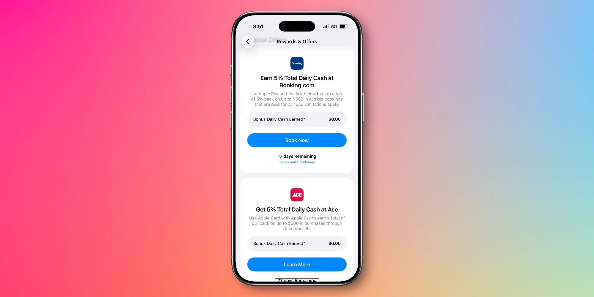 Η Apple Card προσφέρει πλέον 5% ημερήσια μετρητά για το Ace Hardware και την Booking․com