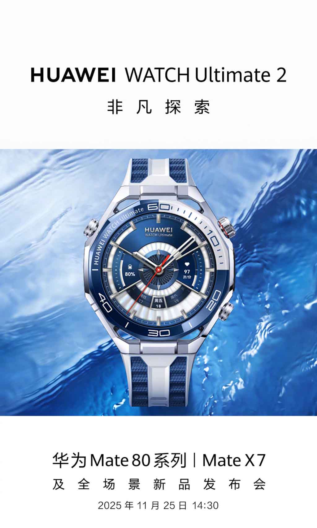 Είναι επίσημο! Η Huawei έχει πλέον επιβεβαιώσει ότι θα κυκλοφορήσει το Watch Ultimate 2 στην Κίνα στις 25 Νοεμβρίου. Η εταιρεία μοιράστηκε μια νέα αφίσα στη σελίδα της στο Weibo, ανακοινώνοντας το χρονοδιάγραμμα κυκλοφορίας για το δυναμικό έξυπνο ρολόι ναυαρχίδα στο σπίτι.