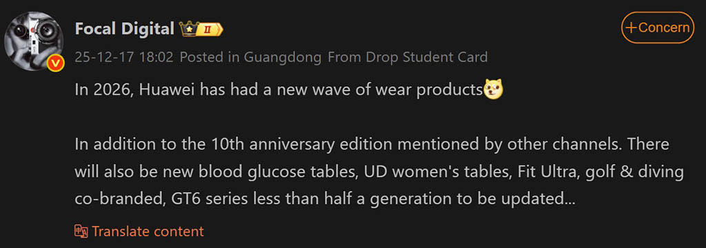 Το FixedFocus σημείωσε ότι η Huawei έχει ένα νέο κύμα φορητών δημιουργιών για το 2026. Θα καταπλήξει τους καταναλωτές με πιο ενδιαφέρουσες λειτουργίες AI, βελτιστοποιημένες λειτουργίες υγείας και τροποποιημένες λειτουργίες προπόνησης, όπως γκολφ, καταδύσεις και άλλα.