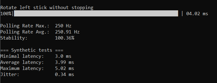 Με αυτά τα λόγια, η μέση καθυστέρηση του ελεγκτή είναι ~4 ms. Είναι εκπληκτικό το πώς το EasySMX X05 Pro όχι μόνο καταφέρνει να νικήσει τον ανταγωνιστή σε ενσύρματη λειτουργία, αλλά προσφέρει εύκολα ρυθμό ψηφοφορίας 1000 Hz με καθυστέρηση 1 ms και στην ασύρματη λειτουργία. Δεν είμαι σίγουρος γιατί το ποσοστό δημοσκοπήσεων και τα στοιχεία καθυστέρησης είναι τόσο ασυνήθιστα φτωχά, αλλά αυτό το αφήνει ξεκάθαρα ξεπερασμένο από τους αντιπάλους του.