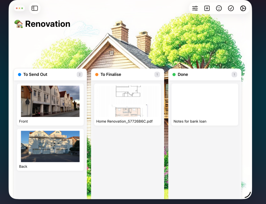Η Dropla λειτουργεί και ως διοργανωτής έργου. Μπορείτε να χρησιμοποιήσετε είτε έναν πίνακα kanban είτε ένα πλέγμα. Αυτό σας επιτρέπει να χαρτογραφήσετε εύκολα ορισμένες ροές εργασίας που απαιτούν πλήθος αρχείων.