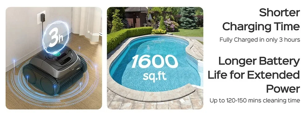 Το σημαντικό πλεονέκτημα είναι η πλήρης απουσία καλωδίου. Με την επαναφορτιζόμενη μπαταρία του και τον πρακτικό σχεδιασμό, το μόνο που χρειάζεται είναι να το ρίξεις στο νερό και να το αφήσεις να κάνει τη δουλειά του. Μέσω της ειδικής εφαρμογής μπορείς να επιλέξεις λειτουργίες, να παρακολουθείς την πρόοδο ή να το σταματήσεις με ένα άγγιγμα.