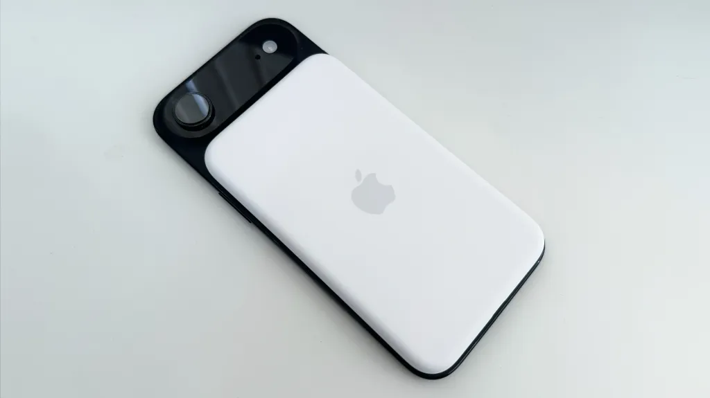 Ο Μπαταρία Apple MagSafe αισθάνεται αρκετά premium. Είναι κατασκευασμένο από πλαστικό μαλακής αφής με μπροστινή πλάκα με πολύ ελαστικό μαξιλάρι, που σκάει ομαλά στο πίσω μέρος του iPhone Air. Η μπαταρία είναι μόλις 6,5 mm λεπτή, αλλά καταλαμβάνει βασικά όλο το πλάτος και το ύψος του iPhone Air μέχρι την περιοχή της κάμερας. Είναι απλώς αρκετά μικρό ώστε να μπορείτε να το προσαρτήσετε εύκολα ενώ ο αέρας είναι μέσα α Θήκη προφυλακτήρα.