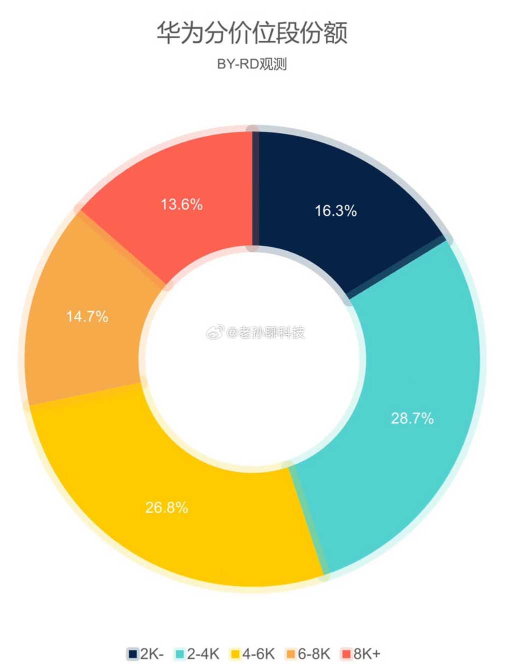 Η LaoSun στο Weibo αποκάλυψε ότι οι πωλήσεις smartphone της Huawei κυμαίνονται κυρίως από την κατηγορία τιμής 2000 έως 6000 γιουάν. Τα τηλέφωνα αυτού του τμήματος αντιπροσωπεύουν το 60% των πωλήσεων.