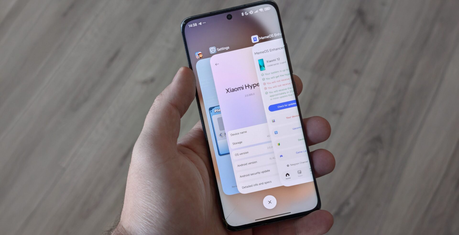 Όταν είναι ενεργοποιημένα, τα κινούμενα σχέδια είναι πολύ κοντά στην υλοποίηση της Apple, συμπεριλαμβανομένης της ομαλής κατακόρυφης κύλισης και του εφέ θαμπώματος στις κάρτες ενώ είναι μετατοπισμένες στην οθόνη. Για συσκευές με HyperOS 3, η ίδια επιλογή είναι προσβάσιμη από Ρυθμίσεις > Πρόσφατες εφαρμογές χωρίς καθορισμένες εντολές.