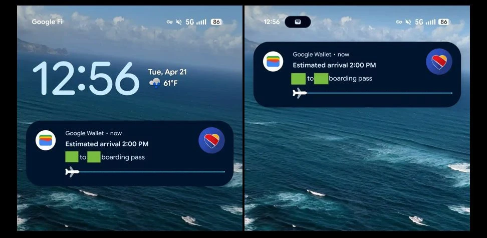 Το Google Wallet ενσωματώνει πλέον τα Live Updates του Android 16, επιτρέποντας στους χρήστες να παρακολουθούν τη ζωντανή εξέλιξη της πτήσης τους μέσω ενός διαδραστικού widget στην οθόνη κλειδώματος. Η ειδοποίηση περιλαμβάνει τα αεροδρόμια αναχώρησης και άφιξης, τον υπολειπόμενο χρόνο (ETA), και μια δυναμική μπάρα προόδου με το εικονίδιο ενός αεροπλάνου, η οποία ενεργοποιείται λίγο πριν την απογείωση και ενημερώνεται σε πραγματικό χρόνο.