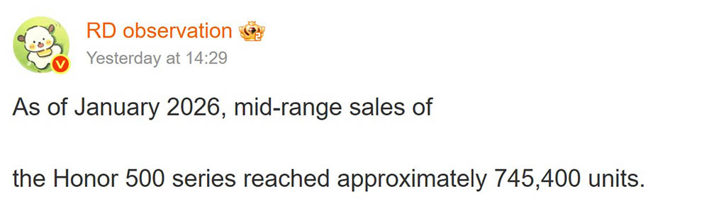 Εν μέσω του βόμβου του Magic 8 Pro Air, τα τηλέφωνα Honor 500 έχουν κάνει τεράστιο αριθμό πωλήσεων στην καταναλωτική αγορά. Η εταιρεία έχει αποστείλει σχεδόν 750.000 μονάδες αυτής της δευτερεύουσας ναυαρχίδας, κατακτώντας σημαντική θέση στη μεσαία κατηγορία.