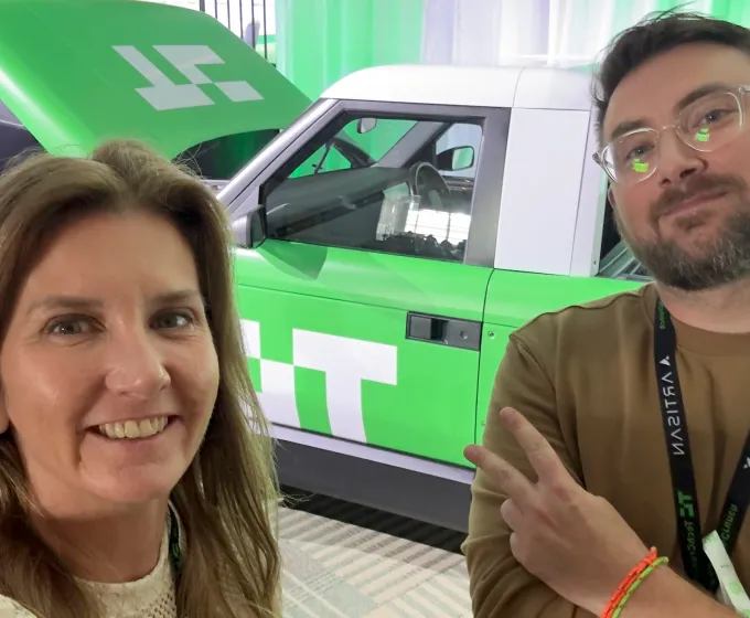 Ο διευθύνων σύμβουλος της Slate, Chris Barman, όχι μόνο ήρθε στη σκηνή μας για μια συνέντευξη, αλλά έφερε επίσης ένα φορτηγό τυλιγμένο με TechCrunch.