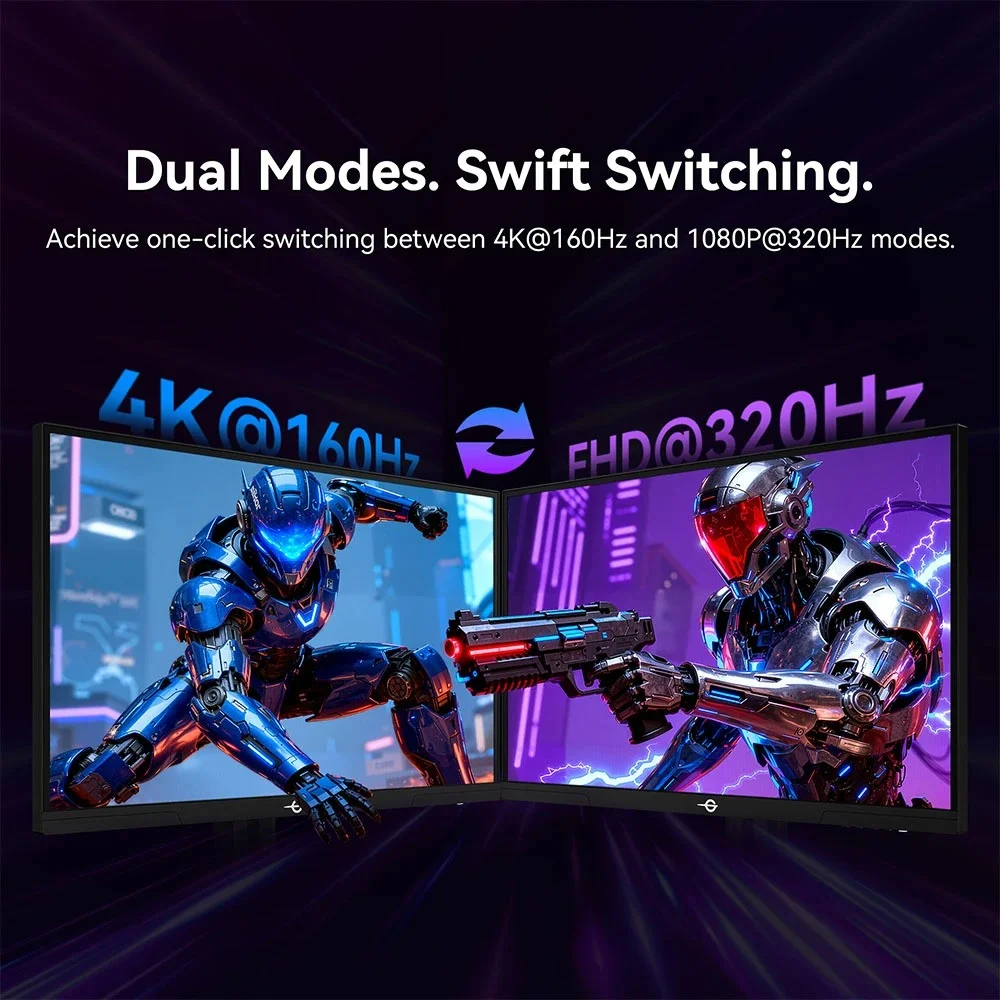 Το μεγάλο «κόλπο» αυτής της οθόνης είναι η δυνατότητα Dual Mode. Στην κανονική της λειτουργία, έχετε ένα πανέμορφο 27 inch Fast IPS panel με ανάλυση 3840×2160@160Hz. Αν όμως το αίμα σας βράζει και η ανταγωνιστικότητα χτυπήσει κόκκινο, γυρνάτε τον διακόπτη σε FHD mode και η οθόνη μεταμορφώνεται σε ένα «εργαλείο» με ανάλυση 1920×1080@320Hz. Είναι κυριολεκτικά σαν να αγοράζετε δύο οθόνες στην τιμή της μιας.