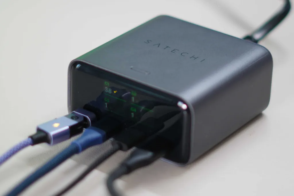 Έχω χρησιμοποιήσει Ο νέος φορτιστής της Satechi ως βασικός φορτιστής του γραφείου μου για περίπου μια εβδομάδα, και έχει γίνει μόνιμο στοιχείο στη ρύθμιση του γραφείου μου. Όπως είπα στην αρχή, η μεγαλύτερη αναβάθμιση εδώ είναι η οθόνη. Είμαι μεγάλος θαυμαστής αυτής της νέας τάσης. Όσο περισσότερη ορατότητα και διορατικότητα έχετε από τον φορτιστή σας, τόσο το καλύτερο. Είμαι κάποιος που δοκιμάζει συνεχώς φορτιστές, ταχύτητες φόρτισης και πρωτόκολλα φόρτισης, επομένως η χρήση αυτής της οθόνης για ανάγνωση δεδομένων σε πραγματικό χρόνο ήταν εξαιρετική για τη δοκιμή διαφόρων προϊόντων. Μπορώ να δω απλά πράγματα όπως ταχύτητες φόρτισης ανά θύρα και συνολικά. Υπάρχουν επίσης μέτρα ασφαλείας θερμοκρασίας που μπορείτε να δείτε σε πραγματικό χρόνο. Εάν τα πράγματα ζεσταθούν λίγο, η οθόνη θα εισέλθει σε λειτουργία ψύξης. Εάν μεγιστοποιείτε τη συνολική απόδοση, θα δείτε μια οθόνη που θα δείχνει ότι τρέχετε σε υψηλό επίπεδο ισχύος. Μπορείτε επίσης να δείτε πότε συγκεκριμένη τεχνολογία που φορτίζετε εκμεταλλεύεται το AVS, το οποίο είναι πολύ ωραίο. Έτσι, ως φορτιστής, μπορεί να χειριστεί όλα όσα του ρίχνετε, συμπεριλαμβανομένης της φόρτισης ενός MacBook Pro 16 ιντσών με πλήρη ισχύ 140 W.