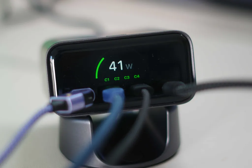 Υπάρχουν μερικά που ξεχωρίζουν σε αυτήν τη λίστα, όπως η υποστήριξη AVS (Adjustable Voltage Supply), η οποία επιτρέπει τη βέλτιστη γρήγορη φόρτιση για νεότερες συσκευές . Ένα άλλο που ξεχωρίζει είναι, φυσικά, η οθόνη. Σας δίνει τόσες πολλές πληροφορίες σε πραγματικό χρόνο, συμπεριλαμβανομένης της διαχείρισης θερμότητας, η οποία είναι σημαντική όταν αποδίδετε 140 W. Θα σας επιτρέψει επίσης να περιστρέψετε τις πληροφορίες της οθόνης με βάση τον τρόπο με τον οποίο ο φορτιστής έχει ρυθμιστεί φυσικά στο γραφείο σας. Αλλά πώς έχει κρατήσει καθημερινά;