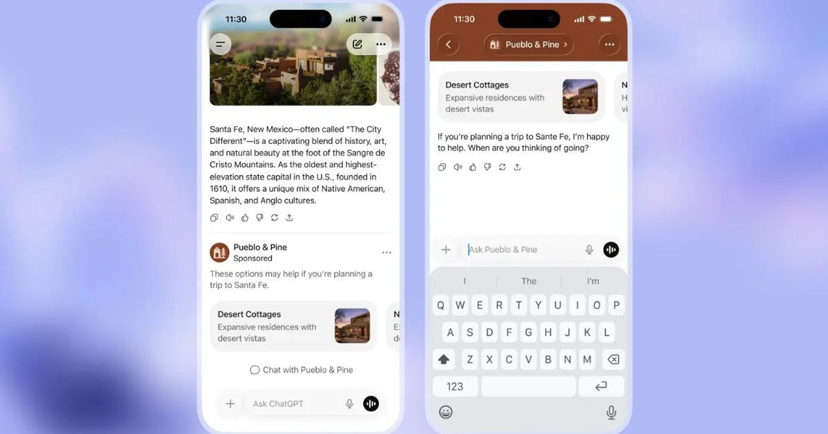 - Στοχευμένες προτάσεις στο τέλος της απάντησης: Όταν ένας χρήστης ρωτάει κάτι που έχει εμπορικό ενδιαφέρον, το ChatGPT θα εμφανίζει σχετικές διαφημίσεις στο κάτω μέρος της απάντησης. Για παράδειγμα, αν κάποιος ζητήσει «τα καλύτερα αξιοθέατα στη Ρώμη», το σύστημα μπορεί να εμφανίσει διακριτικά μια πρόταση για ξενοδοχεία στην ιταλική πρωτεύουσα. Οι διαφημίσεις αυτές θα φέρουν σαφή σήμανση ώστε να ξεχωρίζουν από το οργανικό περιεχόμενο που παράγει το AI.