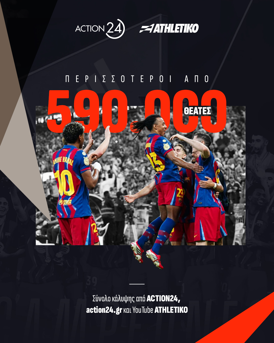 Συγκεντρωτικά, τον μεγάλο τελικό, το pre-game και το post-game, παρακολούθησαν περισσότεροι από 590.000 θεατές σε ACTION 24, Action24.gr και Youtube Athletiko.