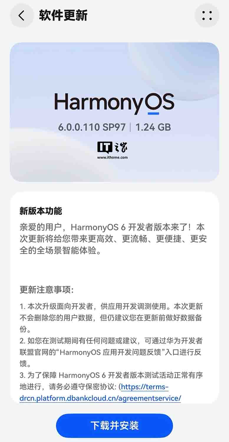 Με βάση το στιγμιότυπο οθόνης χρήστη που δημοσιεύτηκε από χρήστες beta, το HarmonyOS 6.0.0.110 SP97 διαθέτει πακέτο λήψης 1,24 GB. Παρακάτω μπορείτε να ελέγξετε το αρχείο καταγραφής κυκλοφορίας για αυτήν την ενημέρωση.