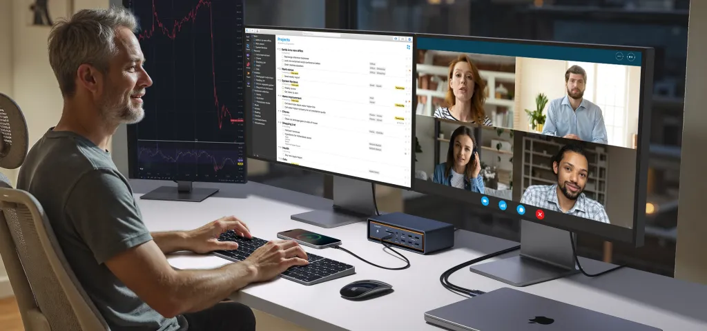 Αυτή είναι η πρώτη βάση σύνδεσης MacBook για Thunderbolt 5 που φέρνει την πραγματική υποστήριξη τριπλής οθόνης από το κουτί. Με την καινοτόμο αρχιτεκτονική διπλού τσιπ και το εντυπωσιακό εύρος ζώνης 120 Gbps, οι άνθρωποι μπορούν επιτέλους να επεκτείνουν τη ροή εργασίας τους σε πολλές εξωτερικές οθόνες. Μπορείτε να κάνετε επεξεργασία σε ένα, να κάνετε προεπισκόπηση σε ένα άλλο και να διαχειρίζεστε εργαλεία ή χρονοδιαγράμματα σε ένα τρίτο. Ακόμη και σε κάτι σαν το Mac mini $499, μπορείτε να έχετε τριπλές οθόνες 4K να τρέχουν χωρίς προβλήματα.
