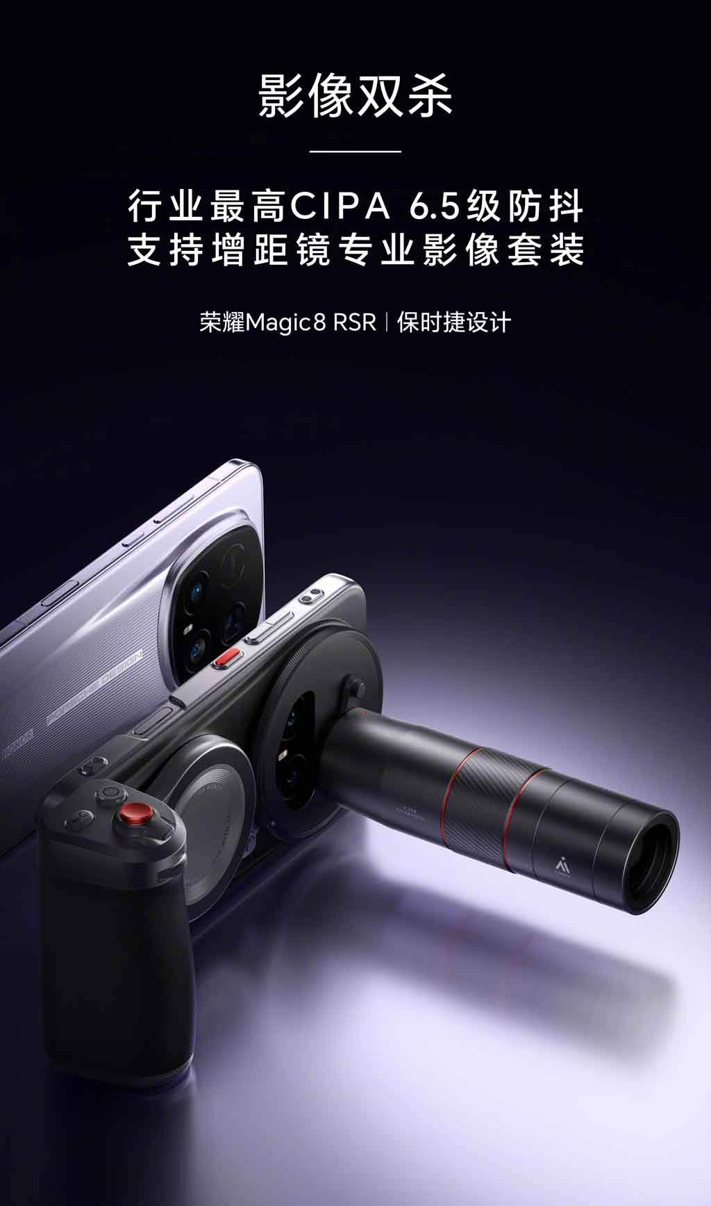 «#HonorMagic8# RSR Porsche Design, κορυφαία στον κλάδο σταθεροποίηση εικόνας CIPA 6,5 επιπέδου, σε συνδυασμό με ένα επαγγελματικό κιτ απεικόνισης τηλεμετατροπέα, συνδυάζοντας δύο ισχυρά χαρακτηριστικά για να καταγράψετε με ακρίβεια καθοριστικές στιγμές εν κινήσει και να επεκτείνετε τις δημιουργικές δυνατότητες!»