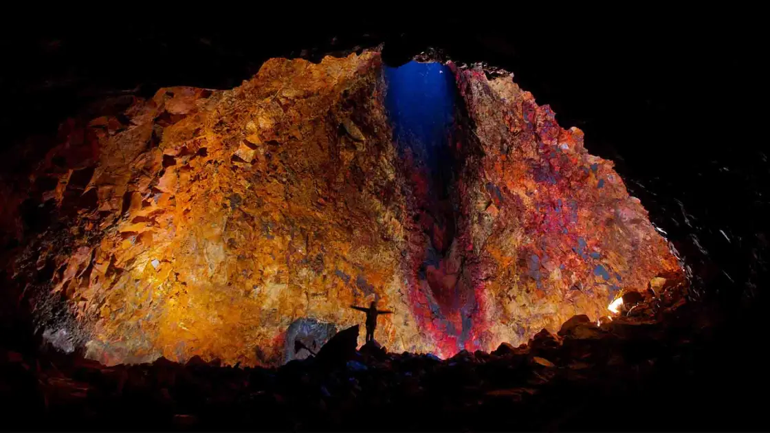 Πρόκειται για το Thríhnúkagígur, ένα ανενεργό ηφαίστειο που βρίσκεται σε μικρή απόσταση από το Reykjavík. Σε αντίθεση με τα περισσότερα ηφαίστεια, όπου το μάγμα στερεοποιείται και φράζει το εσωτερικό μετά την έκρηξη, εδώ συνέβη κάτι διαφορετικό. Πριν από περίπου 4.500 χρόνια, το λιωμένο πέτρωμα φαίνεται πως υποχώρησε ξανά στα βάθη της Γης και άφησε πίσω του μια τεράστια υπόγεια κοιλότητα.