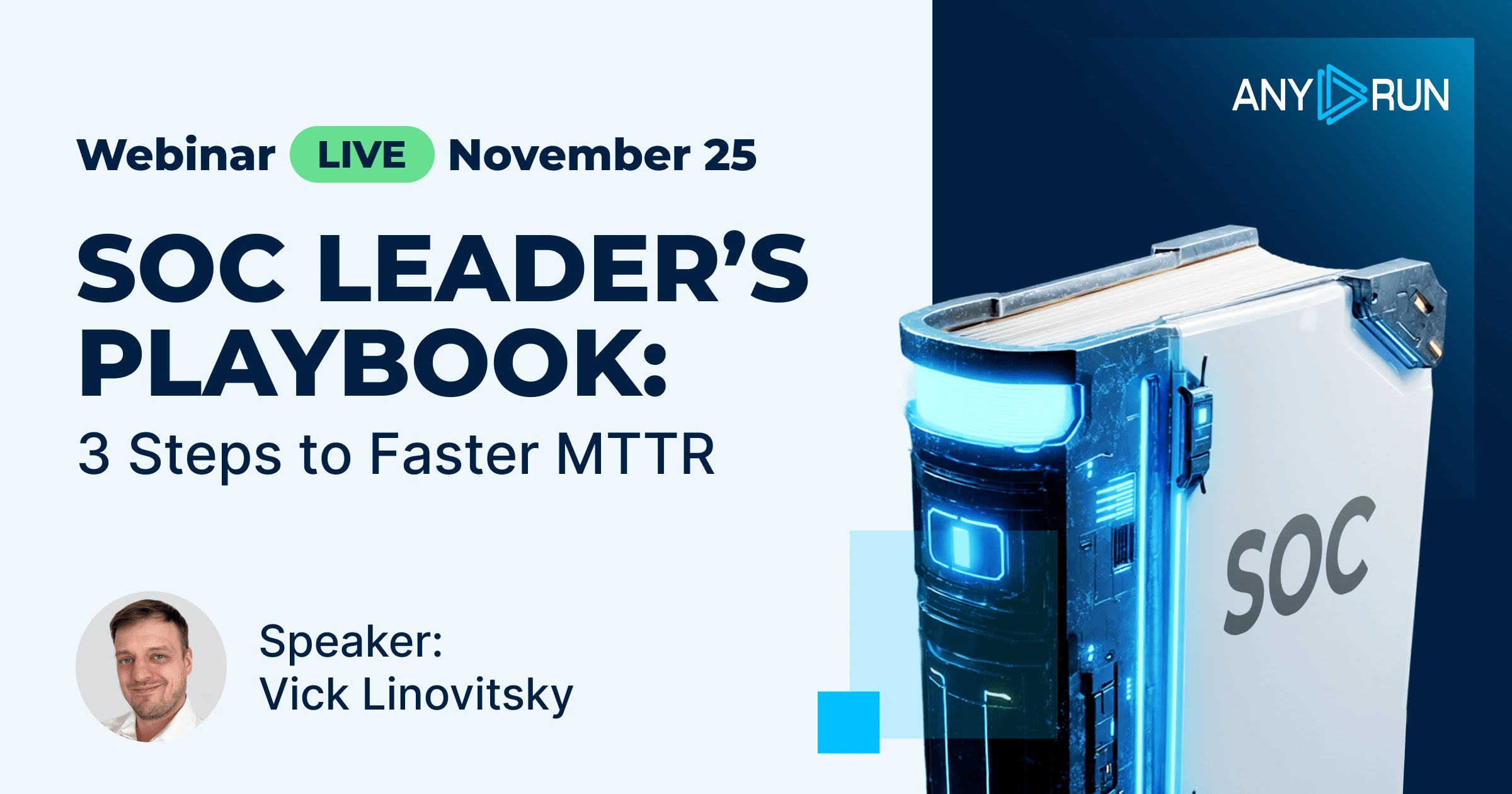 Αν θέλετε μια βαθύτερη, πρακτική ματιά στο πώς τα κορυφαία SOC επιταχύνουν την ανίχνευση και την απόκριση, το ANY.RUN φιλοξενεί μια συνεδρία μιας ώρας με τίτλο “SOC Leader’s Playbook: 3 Steps to Faster MTTR” στο 25 Νοεμβρίου 2025 στις 16:00 CET.