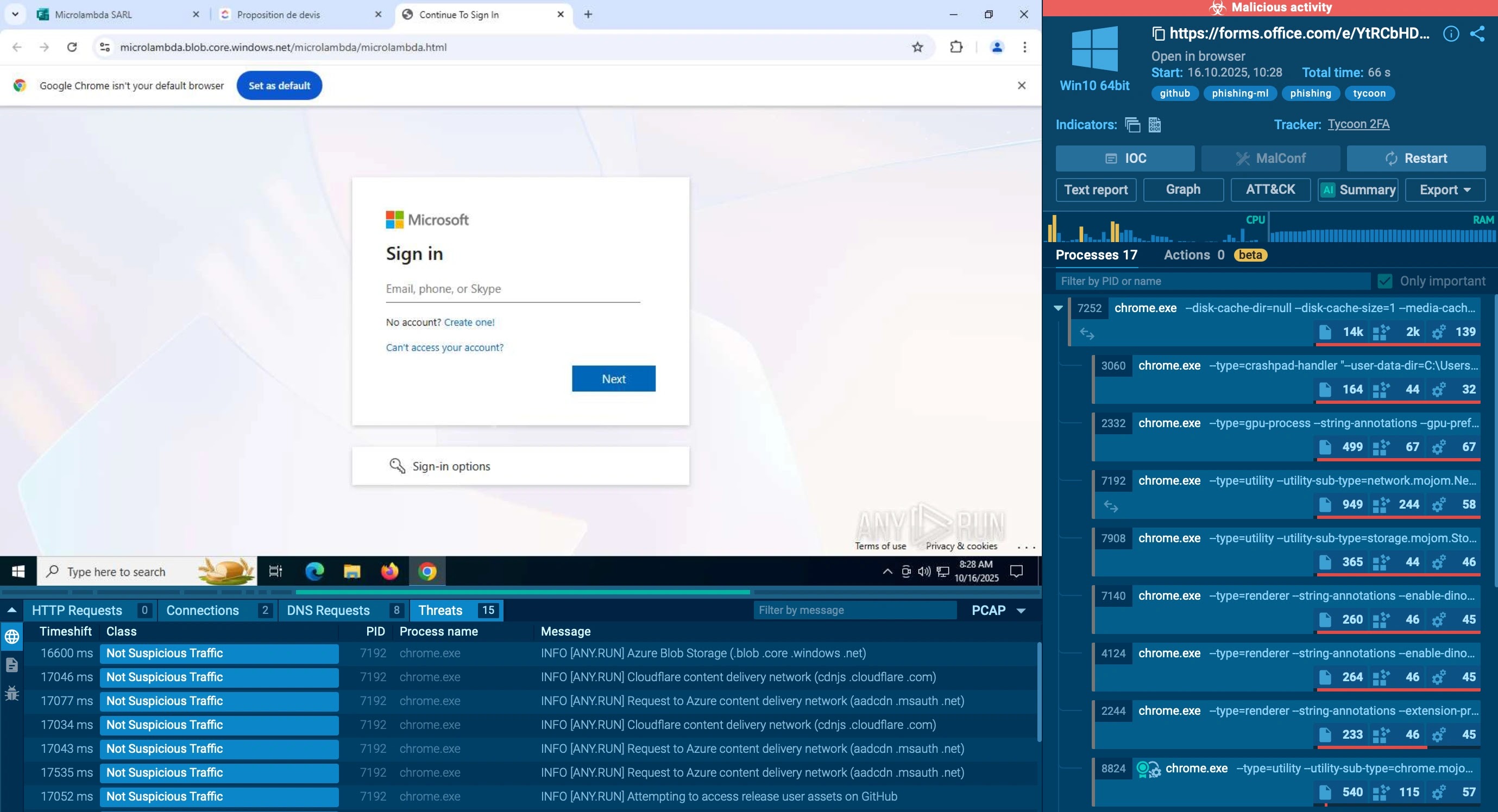 Μέσα στο sandbox, ολόκληρη η ακολουθία ξεδιπλώθηκε αυτόματα σε 1 λεπτό, συμπεριλαμβανομένων των ανακατευθύνσεων και των ενεργειών συλλογής διαπιστευτηρίων.