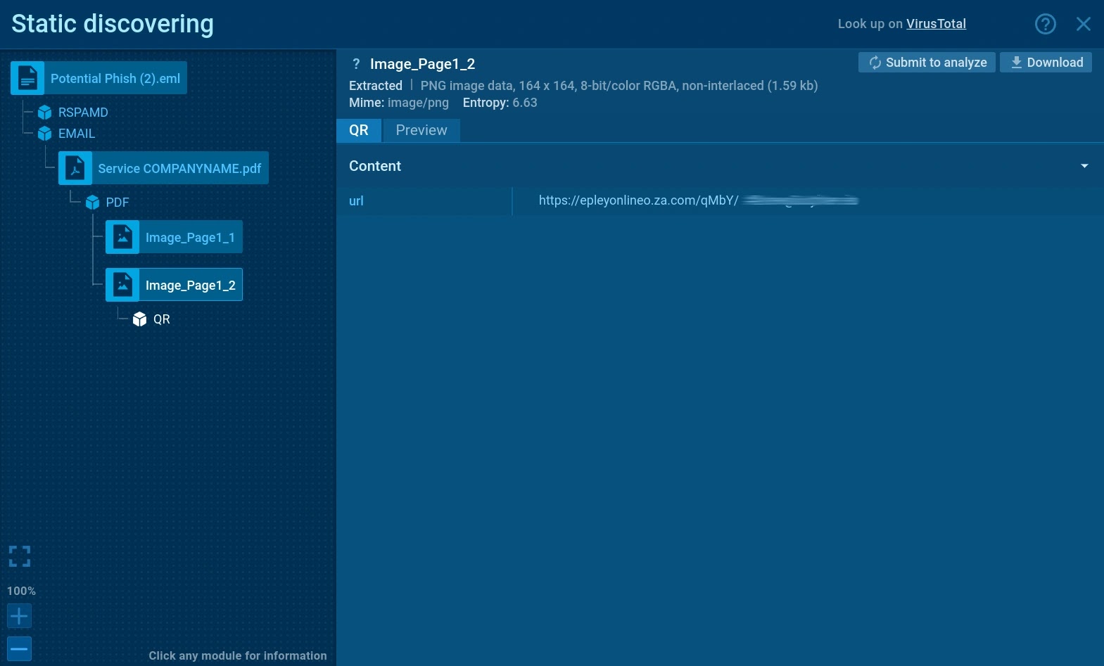 Το ANY.RUN αναγνώρισε τον σύνδεσμο που ήταν κρυμμένος στο QR