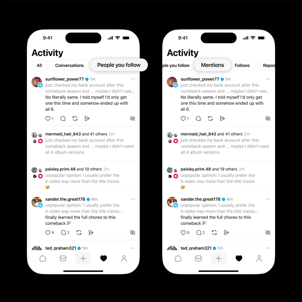 Το Threads κυκλοφορεί επίσης επίσημα σε όλους τους χρήστες δύο νέα φίλτρα στην καρτέλα Δραστηριότητα: Αναφορές και Άτομα που ακολουθείτε, για να είναι πιο εύκολο να “εμφανίσετε τις απαντήσεις που σας ενδιαφέρουν περισσότερο και να εστιάσετε στις συζητήσεις που σας ενδιαφέρουν”.