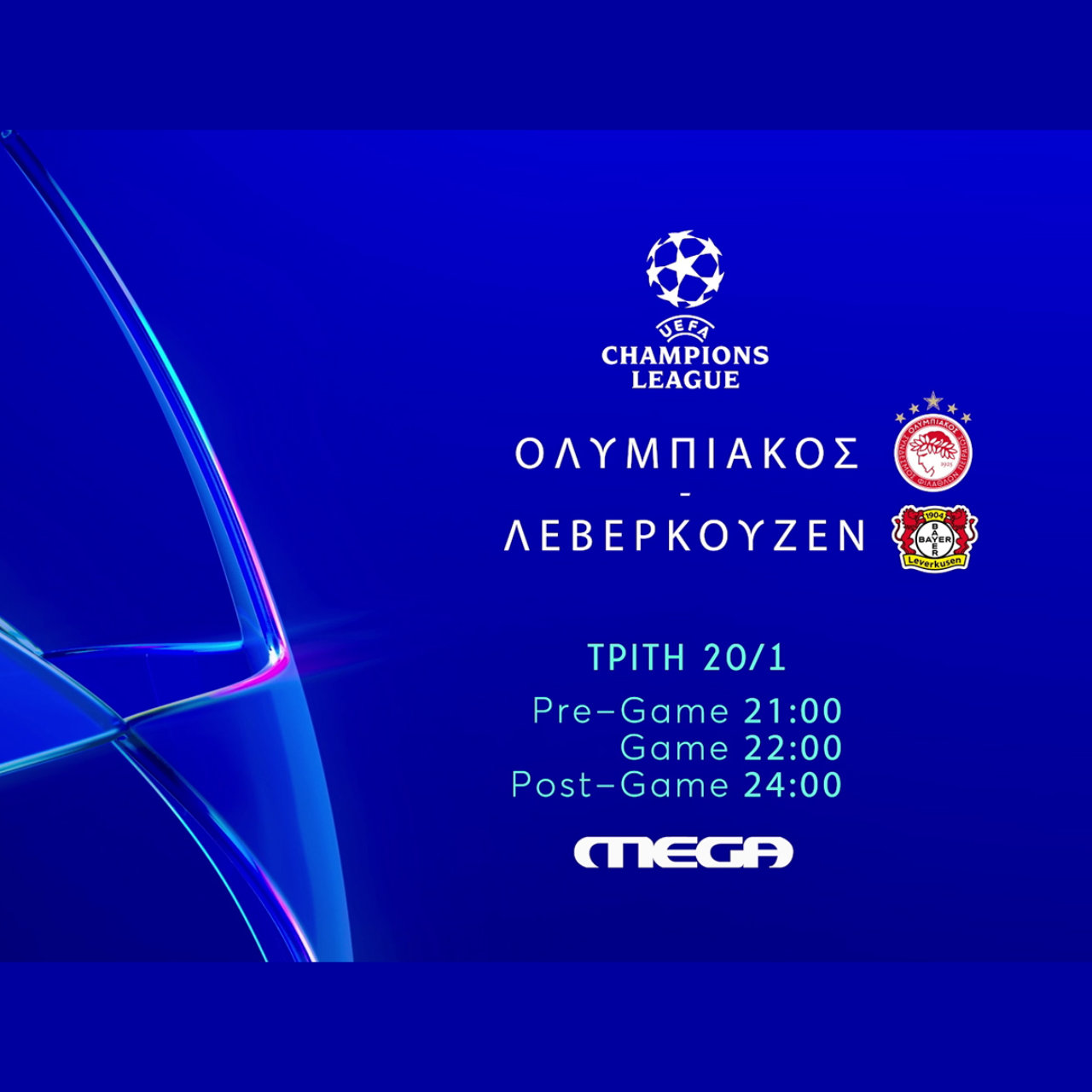 Την Τρίτη 20 Ιανουαρίου, στις 22:00, ο Ολυμπιακός υποδέχεται τη Λεβερκούζεν στο «Γ. Καραϊσκάκης» για την 7η αγωνιστική του UEFA Champions League σε έναν τελικό πρόκρισης που θα μεταδώσει ζωντανά το MEGA.